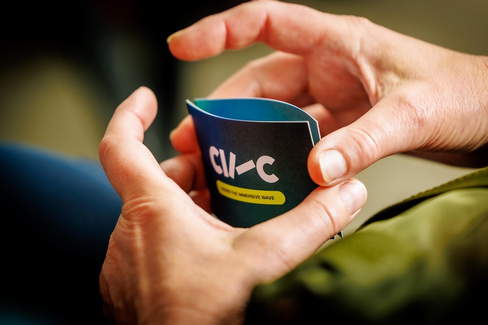 Hands holding a brochure with "CIIIC" logo at a professional event.