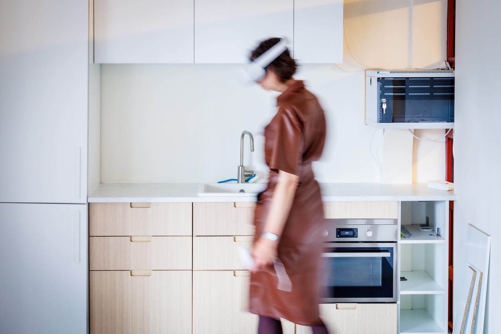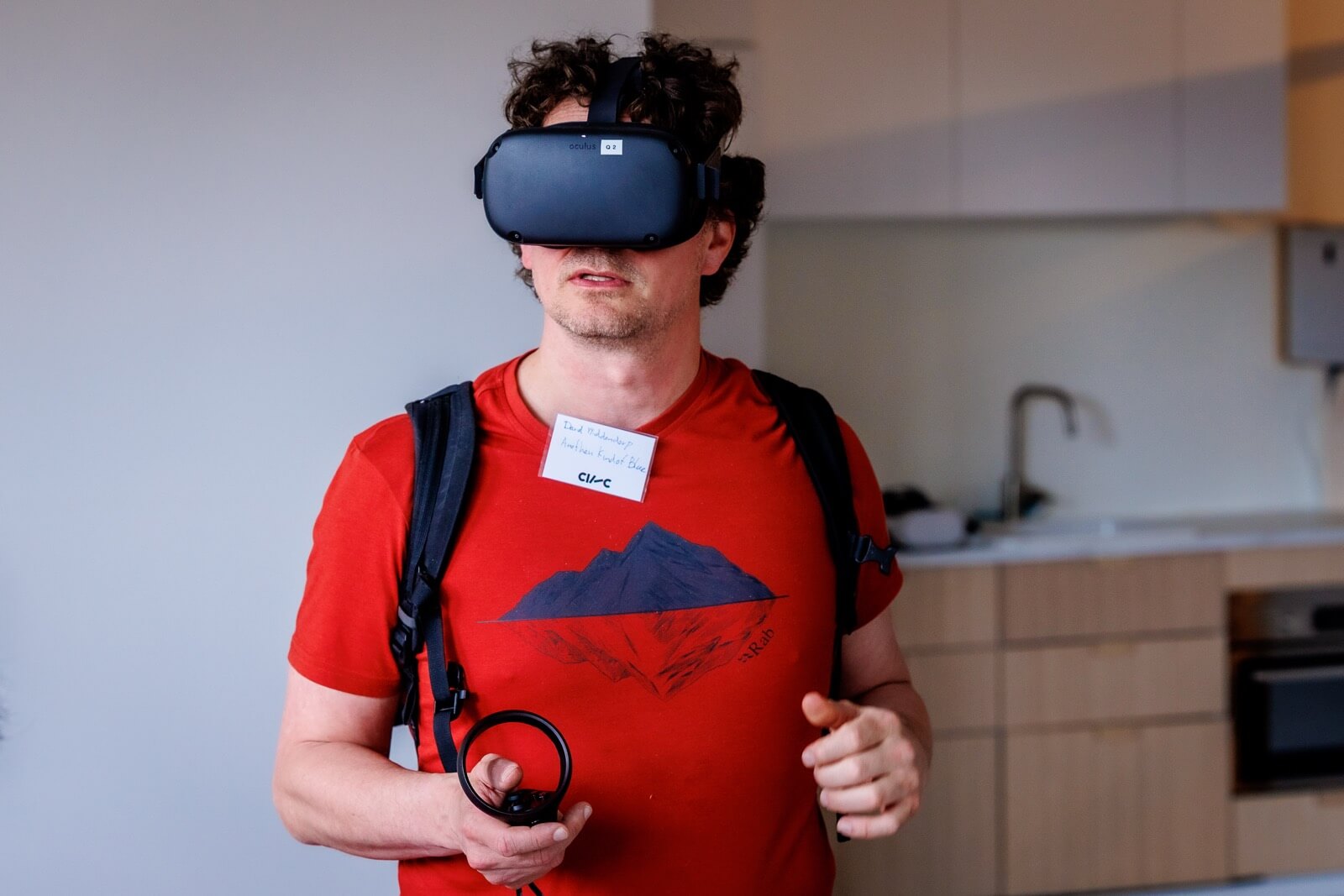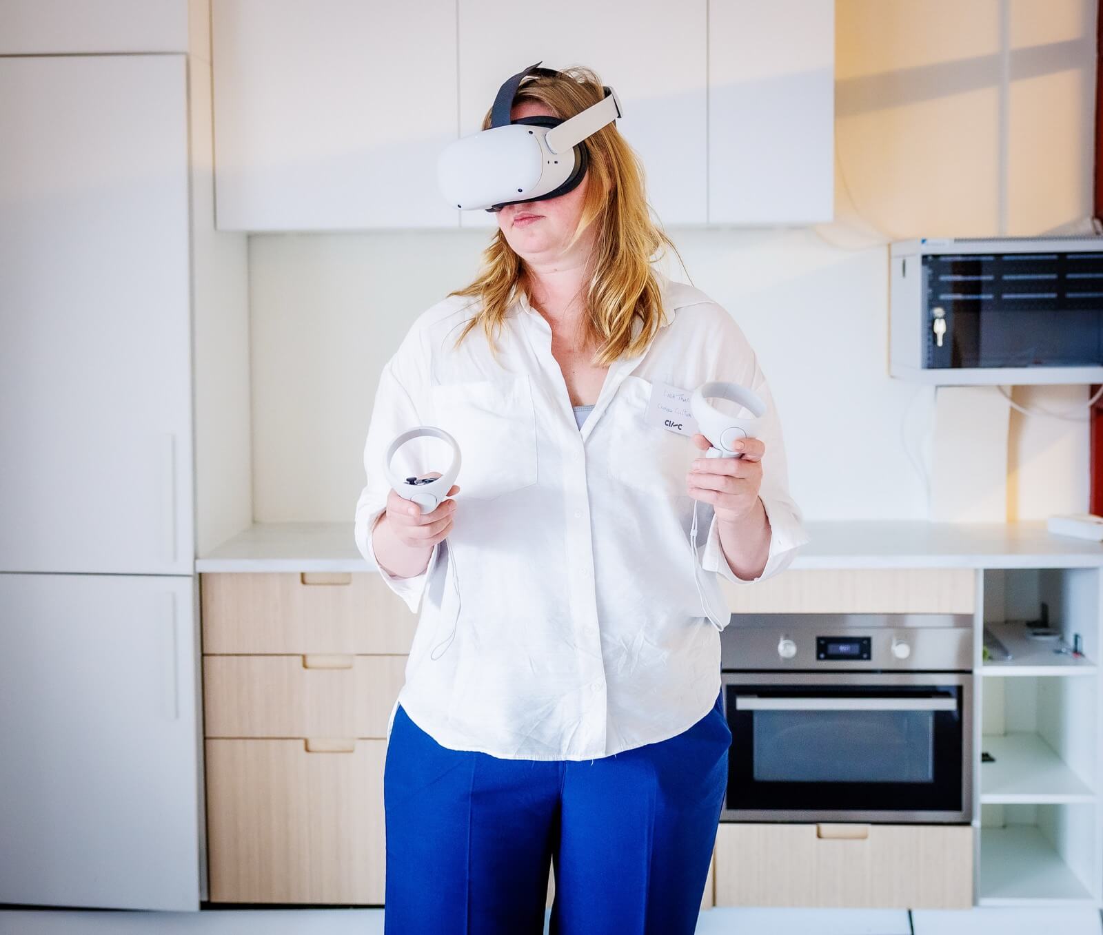 Person wearing VR headset in a modern kitchen setup at CIIIC Annual Meet-up.