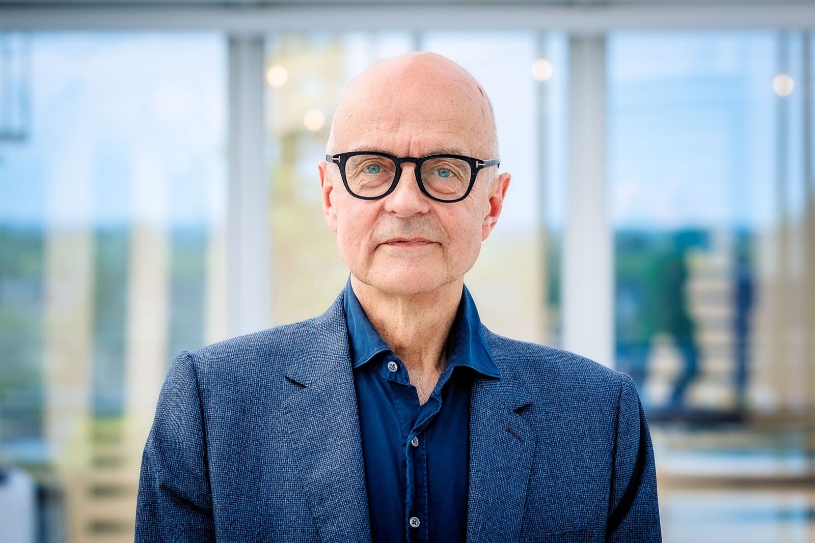 Bald man with glasses in a blue suit stands indoors at the CIIIC Annual Meet-up.