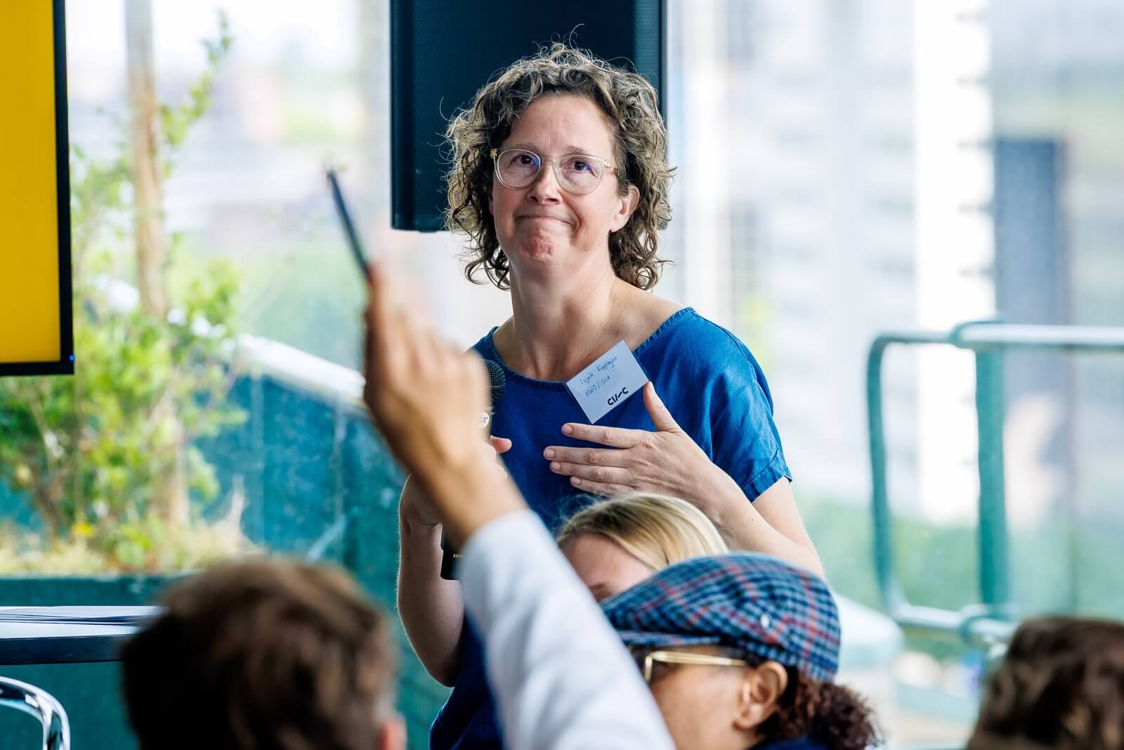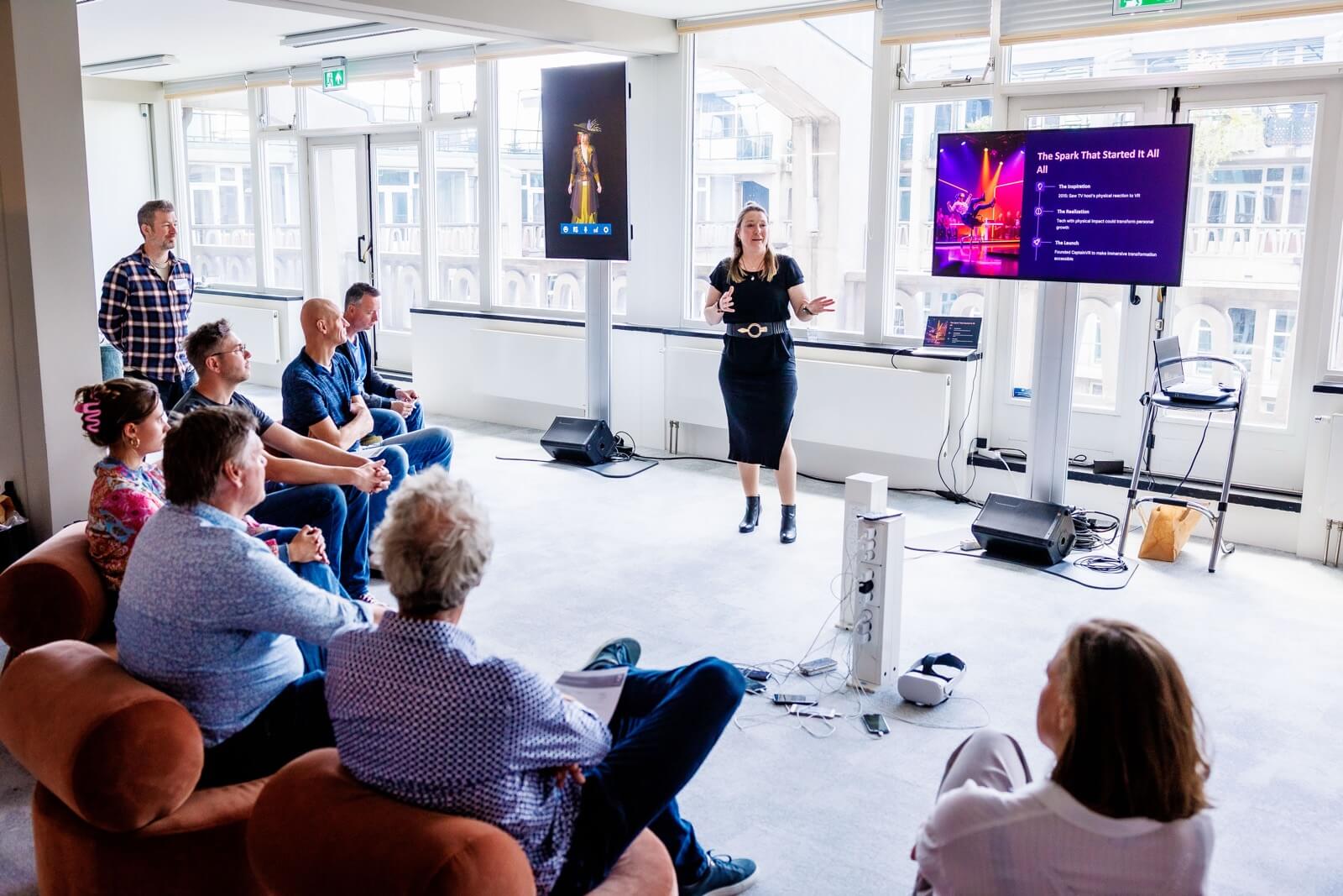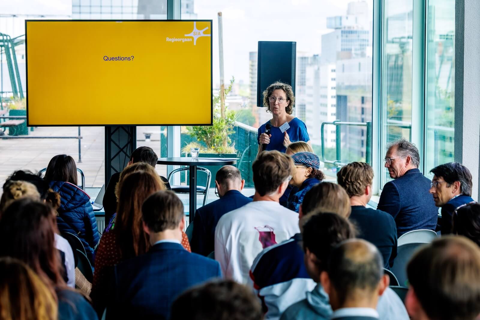Carmen Biemond presenting on the Innovation Impact Challenge.