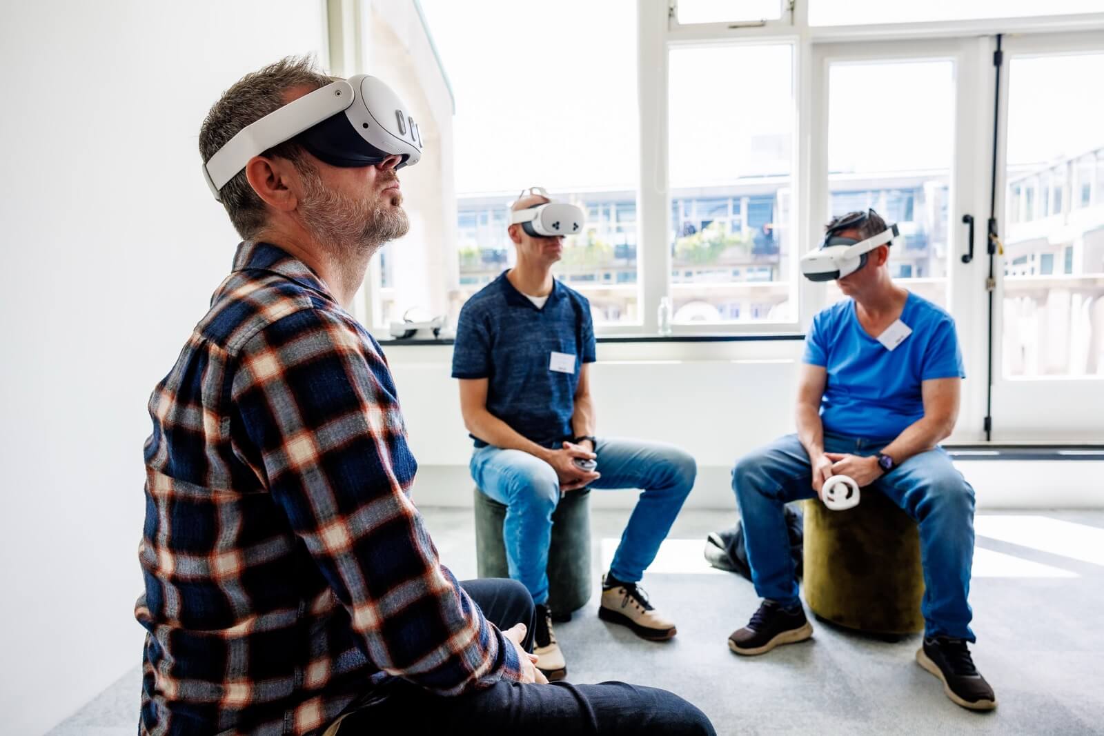 Three people seated wearing VR headsets during the CIIIC Annual Meet-up, engaging in a virtual experience.
